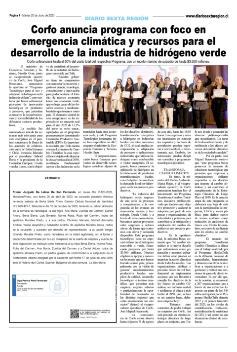 Mortales/Prieto, con fecha 25 de abril de 2023, se concedió posesión efectiva hidrógeno verde requiere Transforma Cambio Climá- Plazo al 2050. En la primera