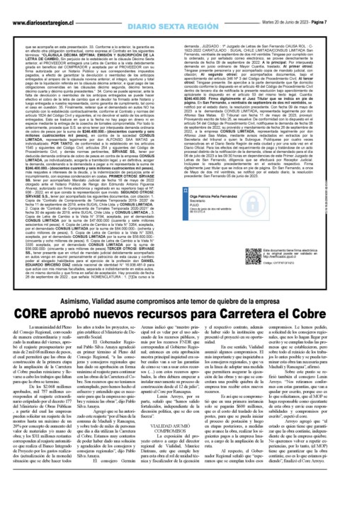 consecutivas en el Diario Sexta Región de esta ciudad y por una sola vez en el