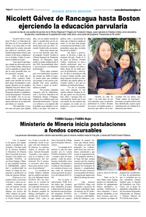 ñanza recibida en el país. Integra, en Rancagua, lugar de junio en Boston, Estados