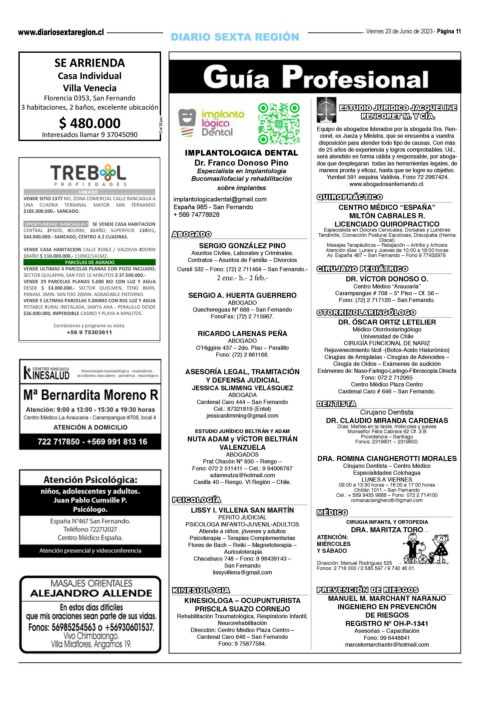 $36.000.000, IMPERDIBLE CASINO Y PLAYA A MINUTOS. Quechereguas Nº 688 – San Fernando O T ORRINOLARINGÓL OGO