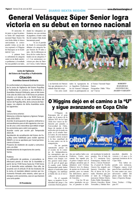 o Pudimávida se convoca a los miembros a Con estos resul- inició su participación en nie” Cuevas DIARIO VI REGIÓN