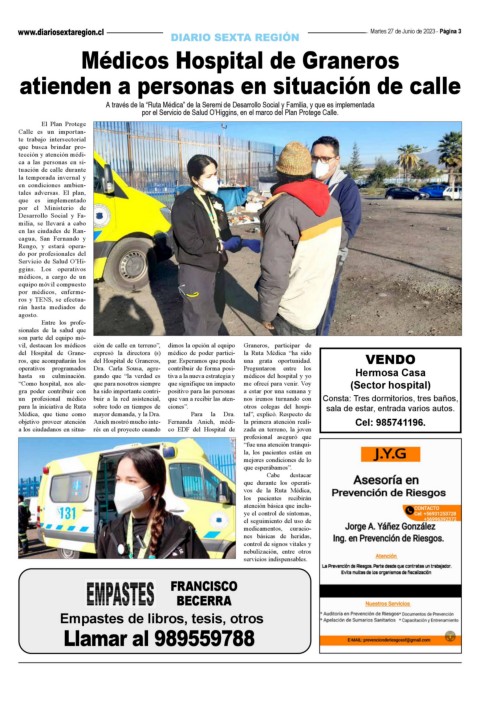 vil, destacan los médicos ción de calle en terreno”, dimos la opción al equipo Graneros, participar de