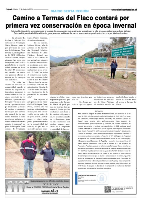 te del MOP O’Higgins, Públicas, destacó que Ante el Primer Juzgado de Letras de San Fernando, por resolución de 29 de