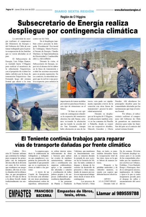 ca la respuesta del suministro gue en la región de O´Higgins, cretario reafirmó el compro-