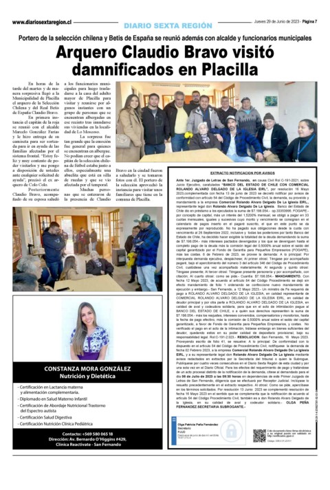 Claudio Bravo, acompa- nas que se enteraron de familiares que tiene en la 2023,complementada con fecha 13 de junio de 2023 se decretó notificar por avisos de