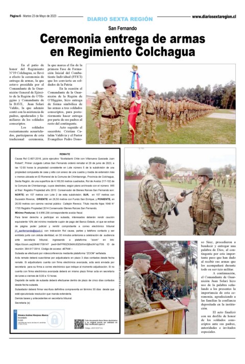 Robert”, Primer Juzgado Letras San Fernando ordenó rematar el 29 de junio de 2023, a