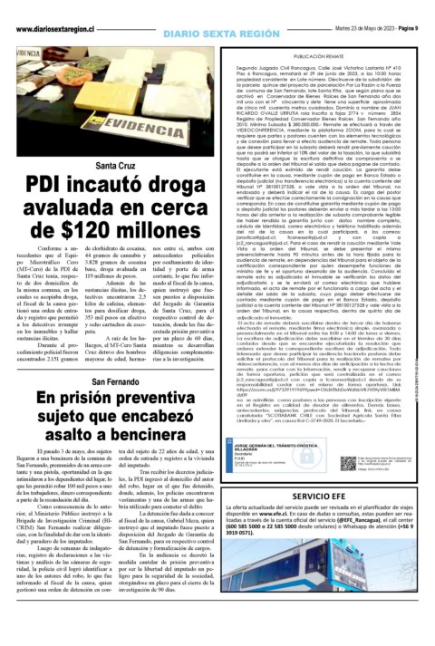 rior, el Ministerio Público instruyó a la La detención fue dada a conocer disponible en www.efe.cl. En caso de dudas o consultas, estas pueden ser rea-