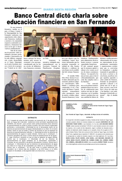 San Vicente de Tagua Tagua, diecisiete de Mayo de dos mil veintitrés.