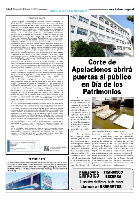 Piso 6 Rancagua, rematará el de junio de 3, a las 1 : horas