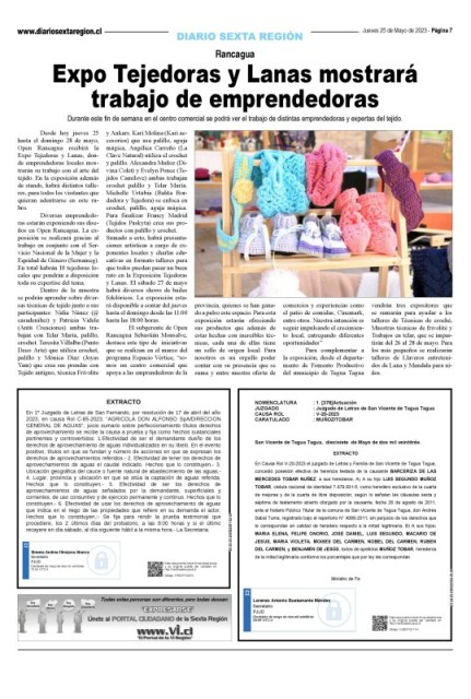 12:54 UTC-4 En Causa Rol V-20-2023 el juzgado de Letras y Familia de San Vicente de Tagua Tagua,