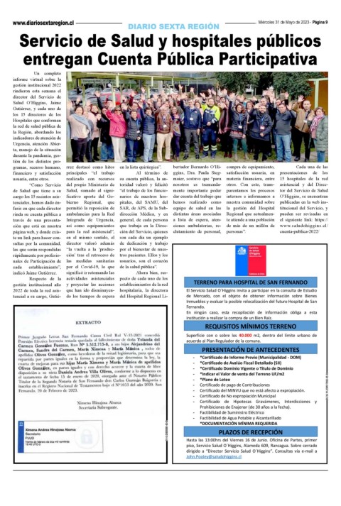 gestión institucional año y proyectar las acciones establecimientos de la red TERRENO PARA HOSPITAL DE SAN FERNANDO