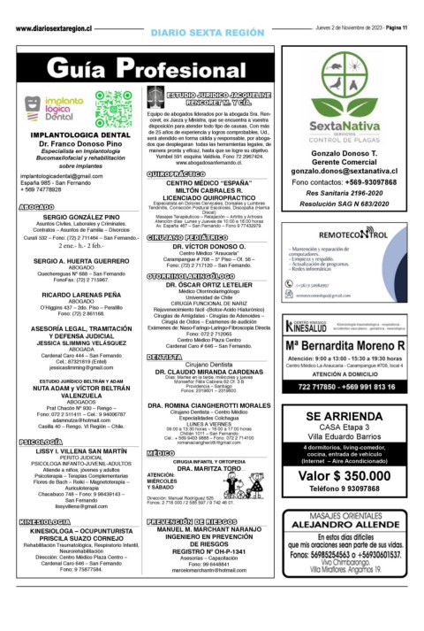 Bucomaxilofacial y rehabilitación Yumbel 591 esquina Valdivia. Fono 72 2967424. Gerente Comercial