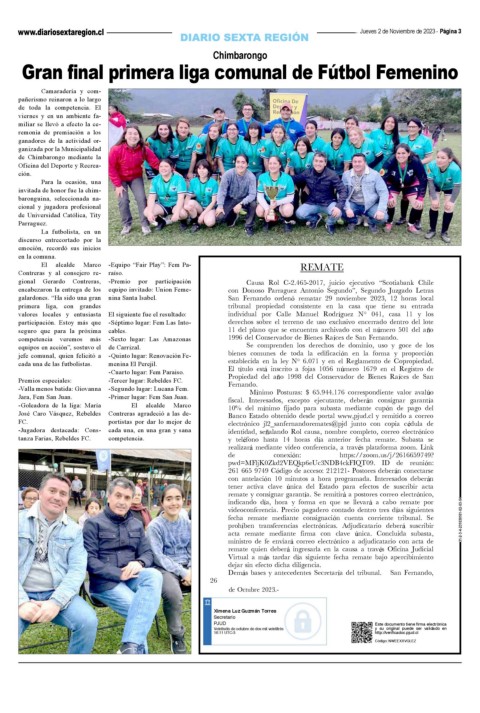 tanza Farias, Rebeldes FC. competencia. y tel fono hasta 14 horas d a anterior fecha remate. Subasta se