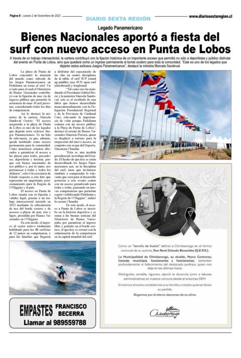 del evento en Punta de Lobos, sino que quedará como un ingreso permanente al borde costero para toda la comunidad. “Este es uno de los legados que
