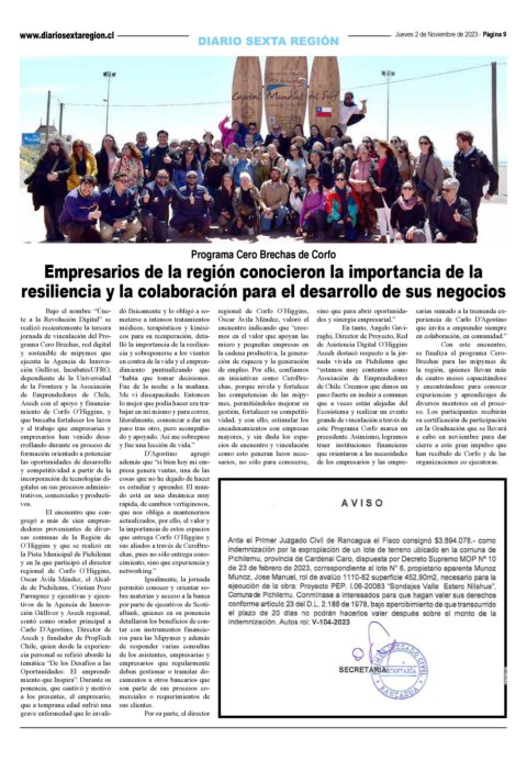 grama Cero Brechas, red digital lló la importancia de la resilien- micro y pequeñas empresas en de Asistencia Digital O´Higgins Con este encuentro,