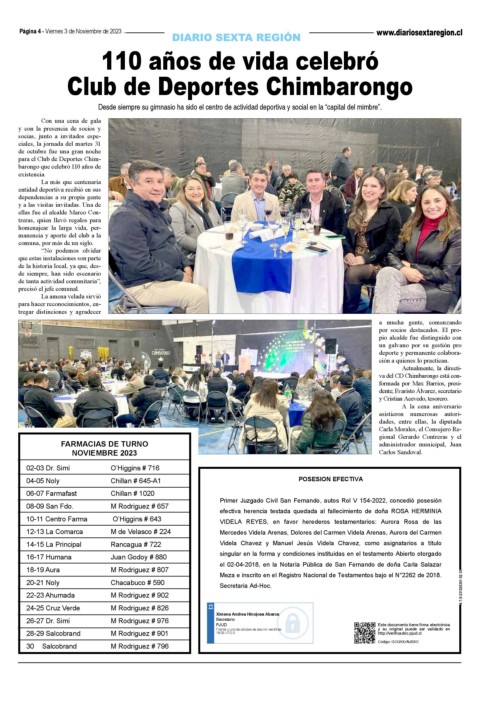 Secretaria Ad-Hoc. va del CD Chimbarongo está con-