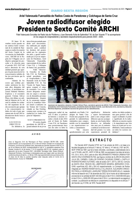 Ariel Valenzuela Fuenzalida de Radios Costa de Paredones y Colchagua de Santa Cruz