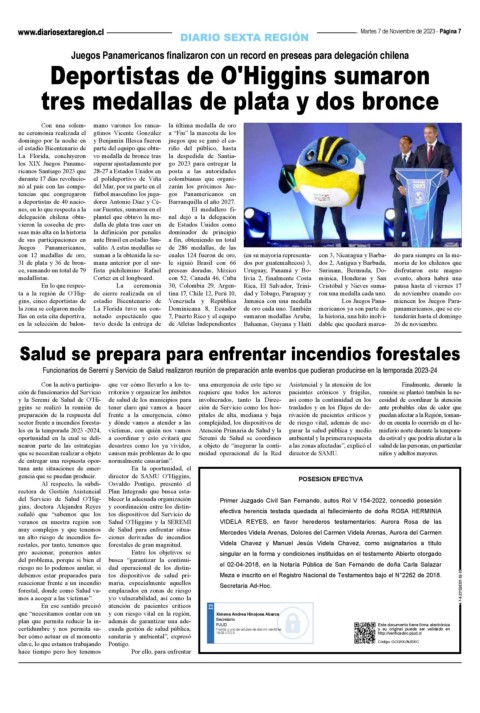 veranos en nuestra región son Salud O’Higgins y la SEREMI VIDELA REYES, en favor herederos testamentarios: Aurora Rosa de las