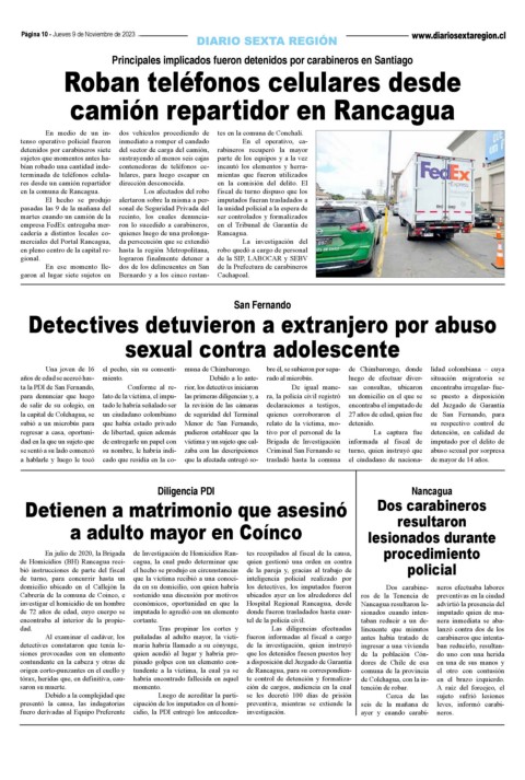 origen corto-punzantes en el cuello y tundente a la víctima, la cual ya se de Rancagua, para su correspondien- comuna de la provincia el otro con contusión