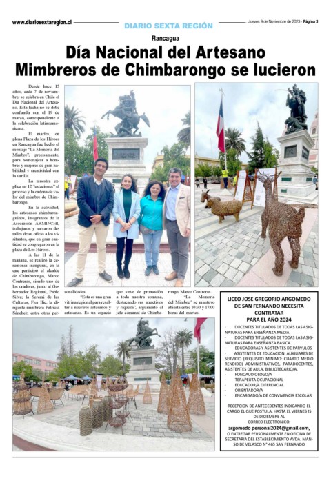 Sánchez; entre otras per- artesanas. Es un espacio jefe comunal de Chimba- horas del martes. CONTRATAR