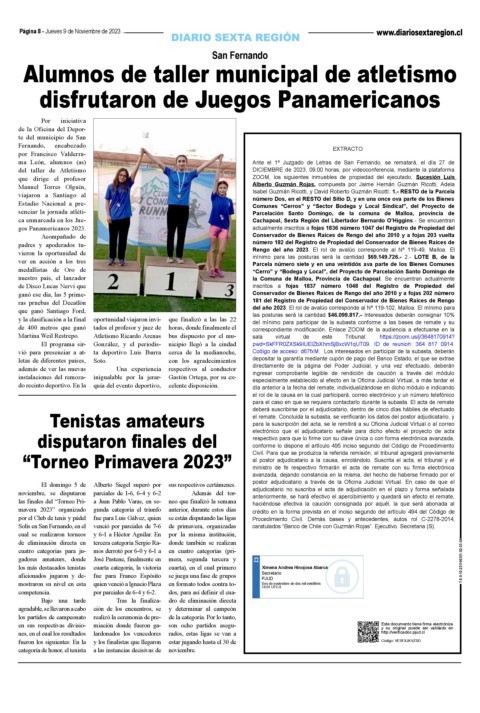gos Panamericanos 2023. actualmente inscritos a fojas 1836 número 1047 del Registro de Propiedad del