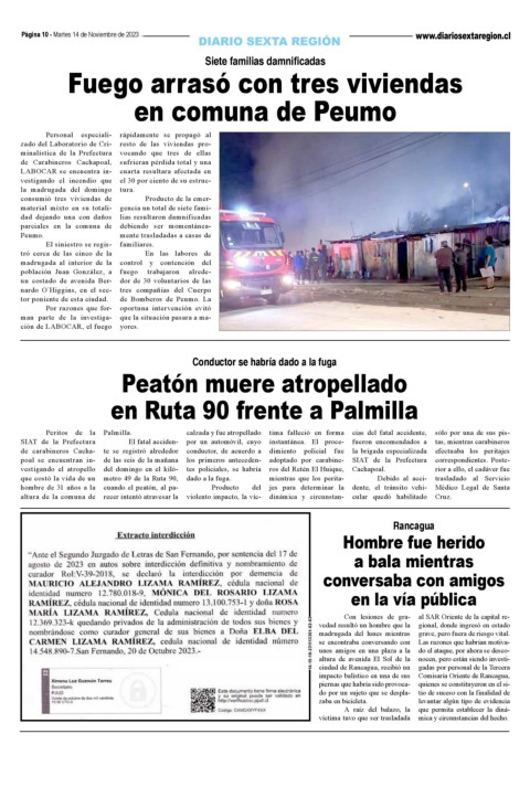 tor poniente de esta ciudad. de Bomberos de Peumo. La
