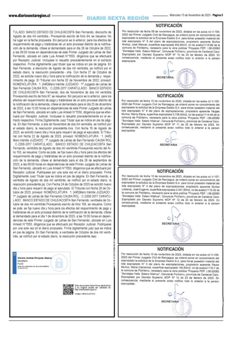 DE CHILE/ACOSTA San Fernando, dos de Noviembre de dos mil veintidós