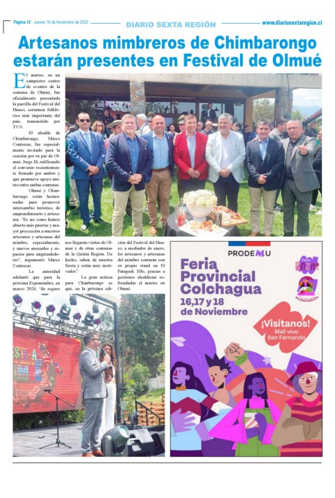 Página 12 - Jueves 16 de Noviembre de 2023 www.diariosextaregion.cl