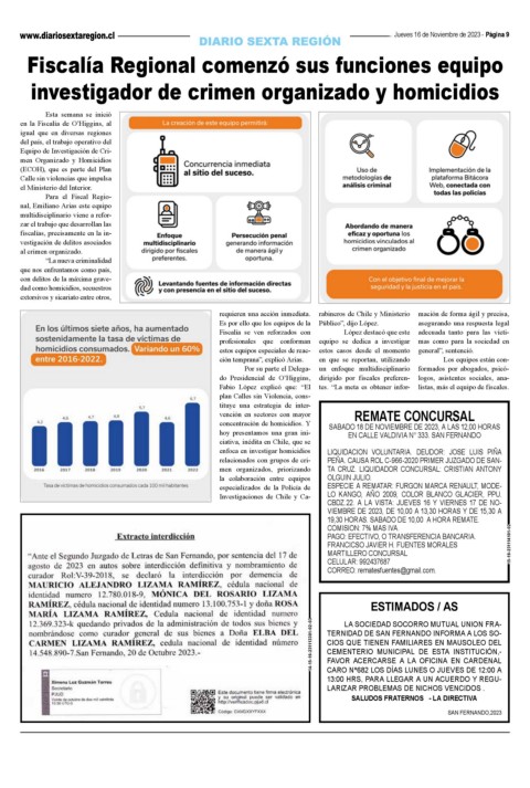 concentración de homicidios. Y SABADO 18 DE NOVIEMBRE DE 2023, A LAS 12,00 HORAS