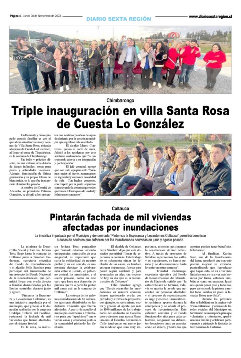 En la zona, la minis- chadas. dín modular que será muy im- como en dinero, y todos los que las viviendas de Coltauco.