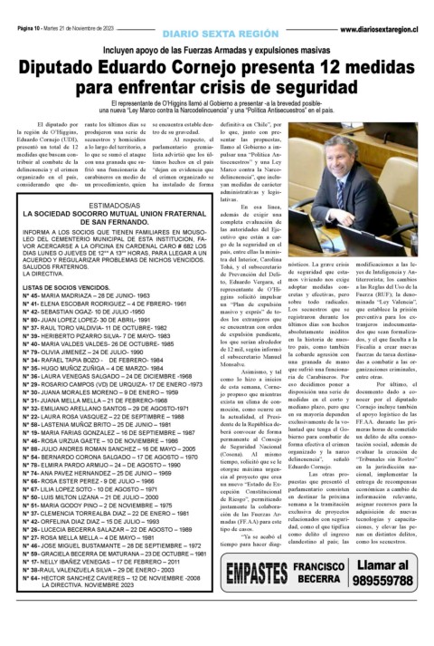 la región de O’Higgins, produjeron una serie de tro de su gravedad. lo que, junto con pre-