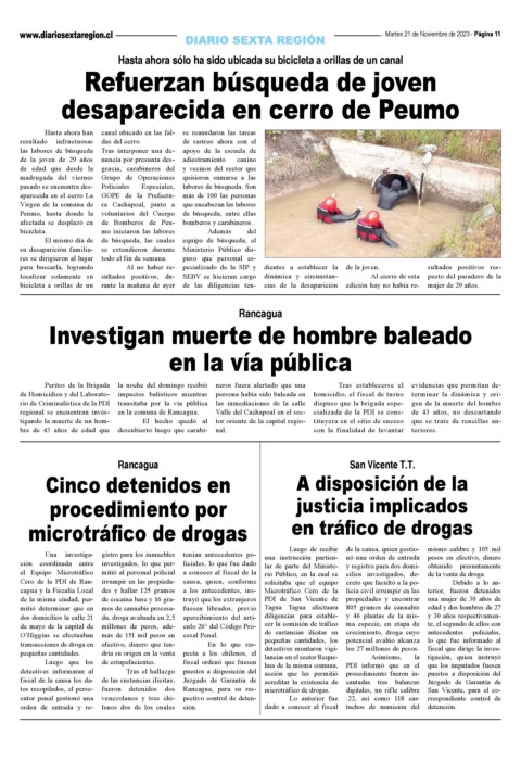 regional se encuentran inves- en la comuna de Rancagua. Valle del Cachapoal en el sec- cializada de la PDI se cons- de 43 años, no descartando