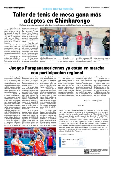 Dieciséis de noviembre de dos mil veintitrés Este documento tiene firma electrónica