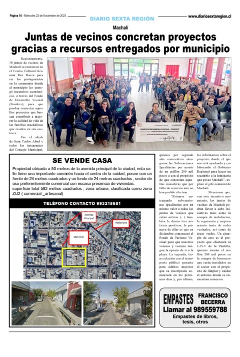 TELÉFONO CONTACTO 993215681 nes igualitarias por un vecinos de Machalí po-