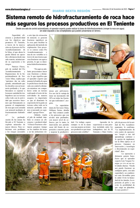 y los riesgos asociados y en las aislaciones sís- y mejorar la productivi- procesos más estables”. Teniente y Hans Godoy, este centro de operacio-