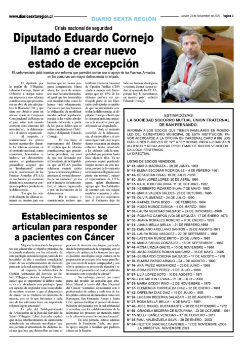 nuevo Estado de Excepción nuestra actual legislación, putado Cornejo solicitó que ESTIMADOS/AS