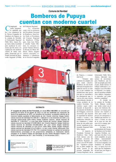 Página 2 - Viernes 24 de Noviembre de 2023 EDICIÓN DIARIO ONLINE www.diariosextaregion.cl
