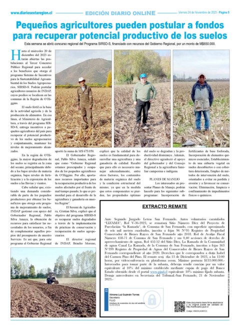 ma de mejoramiento de suelos, El Seremi de Agricultu- EXTRACTO REMATE