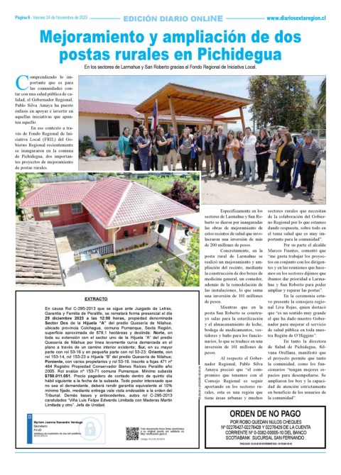 Página 6 - Viernes 24 de Noviembre de 2023 EDICIÓN DIARIO ONLINE www.diariosextaregion.cl