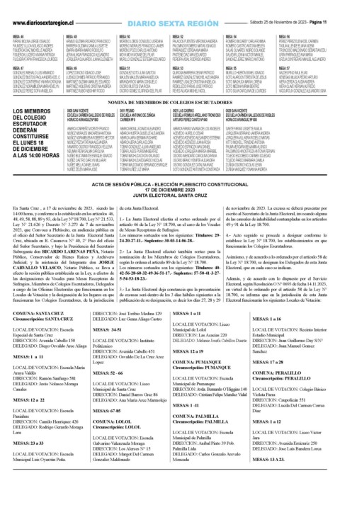 2023, que Convoca a Plebiscito, en audiencia pública en de Mesas Receptoras de Sufragios.