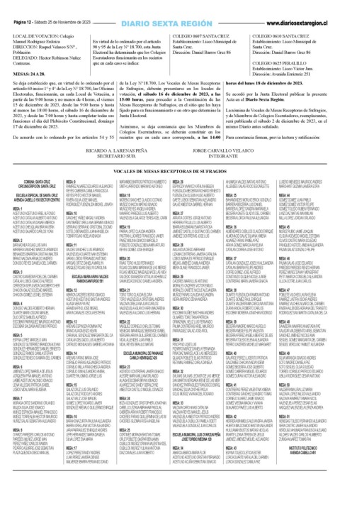 2023, y desde las 7:00 horas y hasta completar todas sus Junta Electoral. y de Miembros de Colegios Escrutadores, reemplazantes,