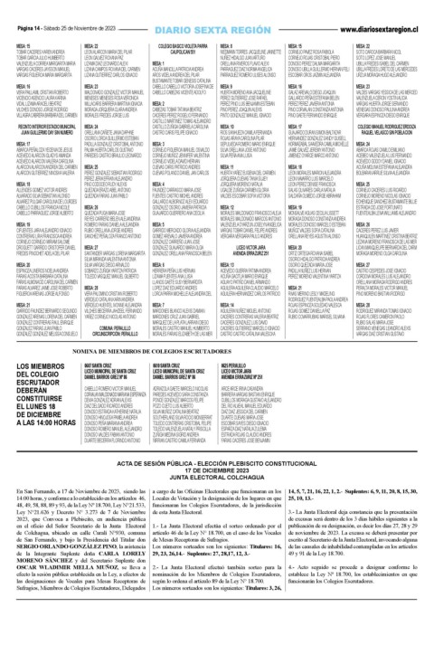 En San Fernando, a 17 de Noviembre de 2023, siendo las a cargo de las Oficinas Electorales que funcionaran en los 14, 5, 7, 21, 16, 22, 1, 2.- Suplentes: 6, 9, 11, 20, 8, 15, 30,