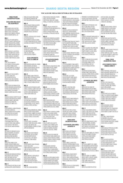 LIZANA RAMIREZ MARCO ANTONIO GONZALEZ PEREZ LUISA ANDREA MESA: 35 CIRCUNSCRIPCIÓN: NAVIDAD ABARCA ESCOBAR FRANCISCO DARIO DONOSO ADASME JAQUELINE DEL CARMEN