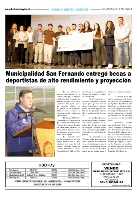 25 Alberto Ortega Jiron Chillán Nº 620 722318604 9:00 a 15:00 hrs. (Lunes a Viernes PAPELES AL DIA