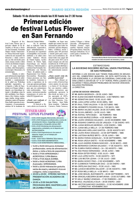 próximo sábado 16 de di- dad, se realizará venta de cionamiento para todos los Soledad Fuentes (aqua