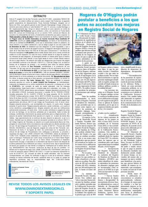 Página 4 - Jueves 30 de Noviembre de 2023 EDICIÓN DIARIO ONLINE www.diariosextaregion.cl