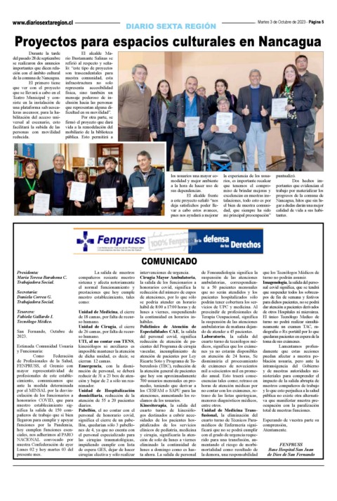 Tesorero:                  Unidad de Medicina, el cierre  lunes a viernes, suspendiendo  prescindir de  profesionales de  de otros Hospitales ni microárea.