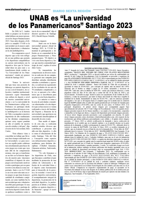portante. Junto a eso la UNAB para el desarrollo de la perso- Secretaría del tribunal al tercer día después de la última publicación de la notificación por