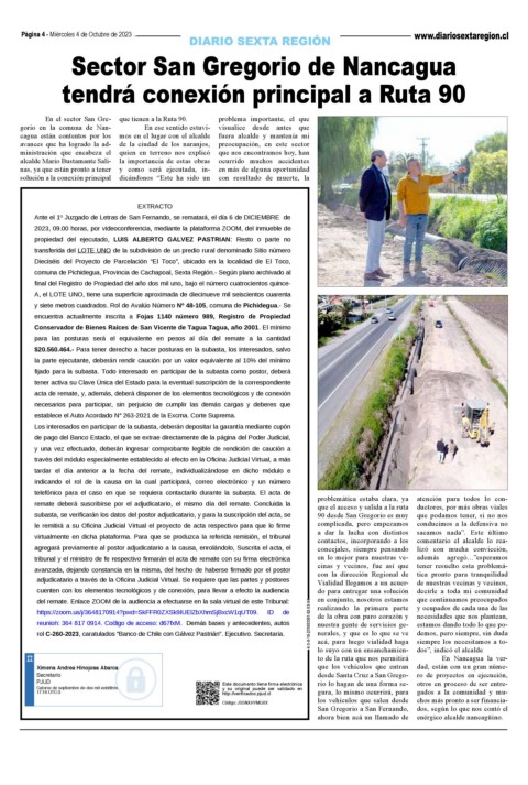 rol C-260-2023, caratulados “Banco de Chile con Gálvez Pastrián”. Ejecutivo. Secretaria. acá, para luego vialidad haga siempre los necesitamos a to-
