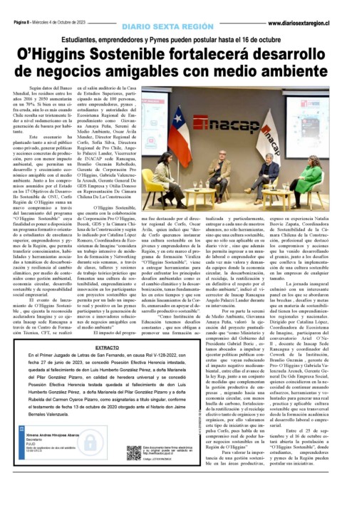 Siete de septiembre de dos mil veintitrés Este documento tiene firma electrónica Región de O´Higgins” “O´Higgins Sostenible”, donde